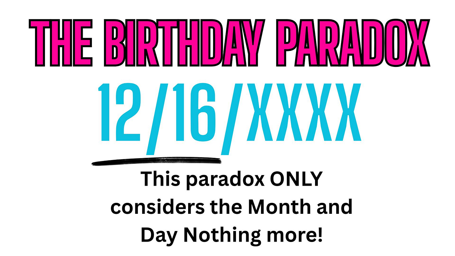 Here is the Birthday Paradox in a nutshell: