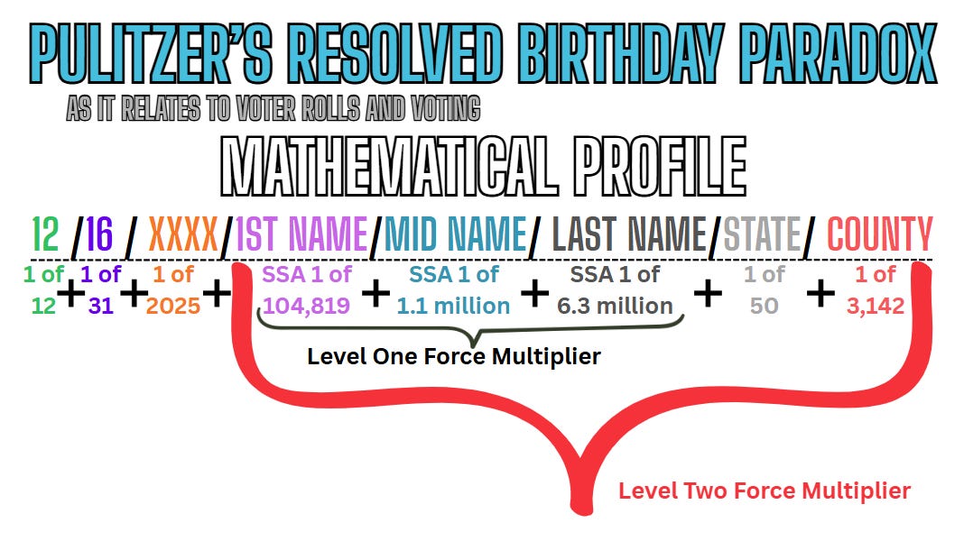 Finding thousands is not a coincidence. It is not a “record-keeping error.” It is mathematical proof that the voter rolls were artificially inflated with duplicate or fraudulent identities. Our work closed the loop with one of the most powerful statistical tools in probability theory.